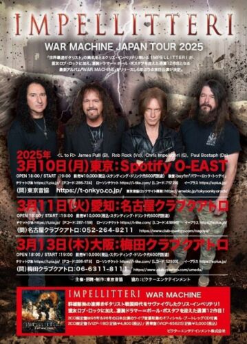 え?うん?新譜公演??? ameblo.jp/tokyoonkyorock/image-12881896202-15531556063.html タイトル: IMPELLITTERI "War Machine" Japan Tour 2025 MEMBER: On Guitar:Chris Impellitteri On Vocal:Rob Rock On Bass:James Pulli On Drums:Paul Bostap…