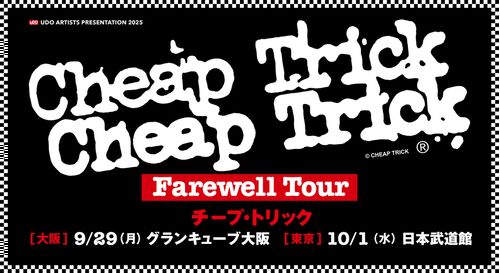公演延期、中止を乗り越え、Farewell Tour 遂に開催! udo.jp/concert/CheapTrick25 タイトル: Cheap Trick Farewell Tour メンバー: On Guitars, Vocals:Robin Zander On Guitars:Rick Nielsen On Bass:Tom Petersson On Drums:Daxx Nielsen On Guita…